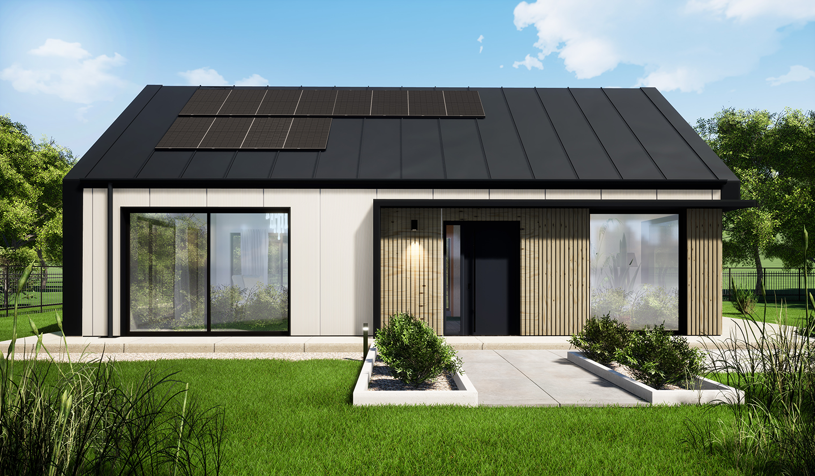 Balker H67 è un bungalow con 2 camere da letto con un’area simile a un appartamento tradizionale in un condominio. Dal soggiorno con angolo cottura e zona pranzo si accede direttamente al terrazzo. Ampie e numerose vetrate danno un senso di spazio. Una casa senza smog, stufa e locale caldaia? Si, adesso è possibile.