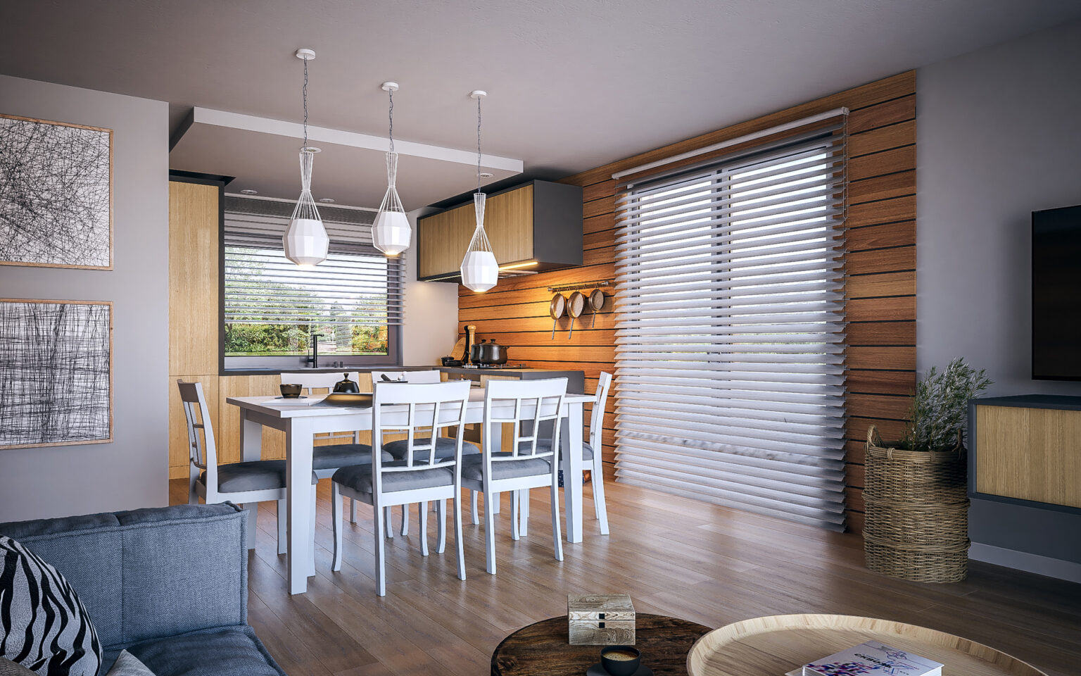 H94 è una casa che si sviluppa a piano terra. E’ composta da 3 camere da letto. Dal soggiorno con angolo cottura e sala da pranzo abbiamo accesso direttamente al terrazzo. Ampie e numerose vetrate danno un senso di spazio in più. Una casa senza smog, stufa e locale caldaia? Si, adesso è possibile! Le case modulari BALKER sono progettate per riscaldare con metodi tradizionali, ma noi consigliamo soluzioni ecologiche che rispettino l’ambiente, ma anche più economiche.