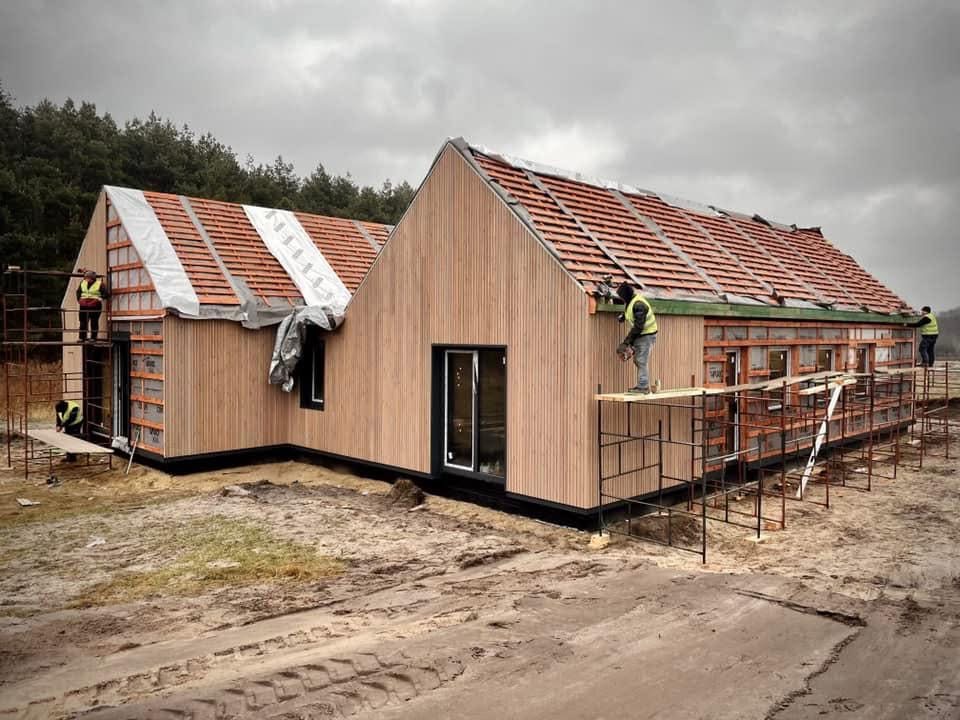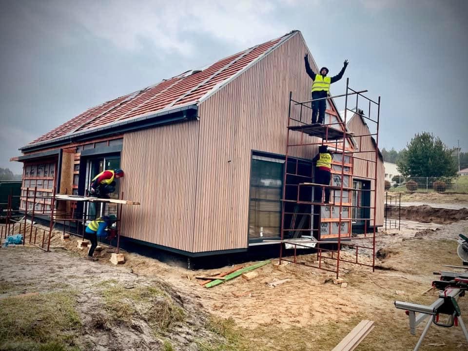 Realizzazione del progetto H 172 – questo montaggio e la rifinitura esterna sono stati effettuati in soli 2 giorni! Rifinitura esterna in WPC effetto legno.