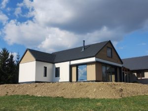 Realizzazione del progetto H 172 nella versione non standard – versione con il rivestimento esterno misto: intonaco/lamiera nera e bianca