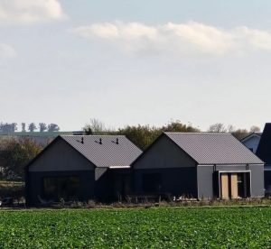 Realizzazione del modello H 172 nella versione Modern Black – versione con il rivestimento esterno in lamiera nera e intonaco nero. Interni stile moderno –