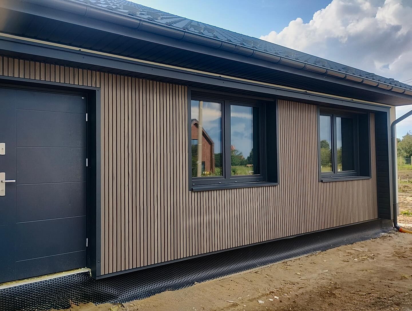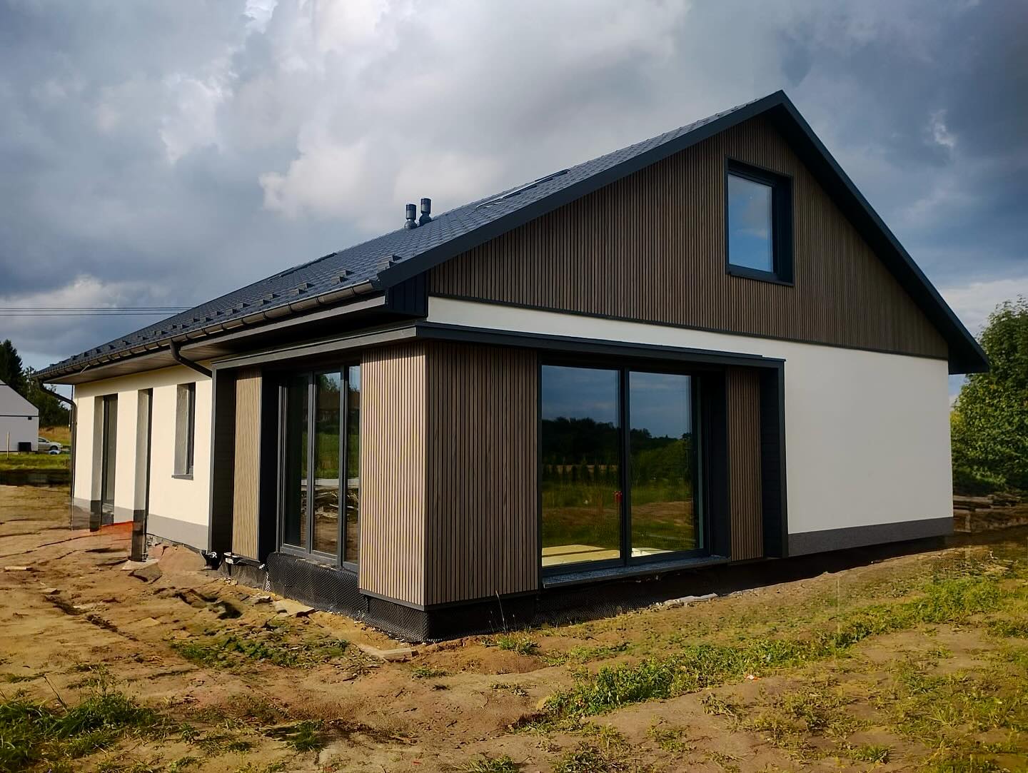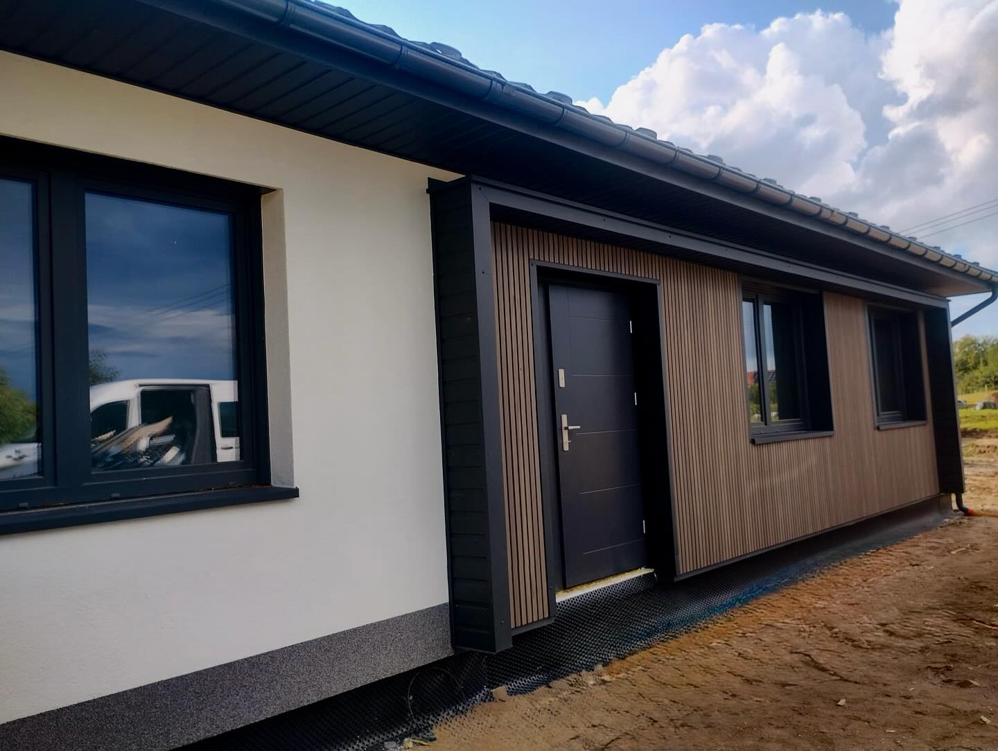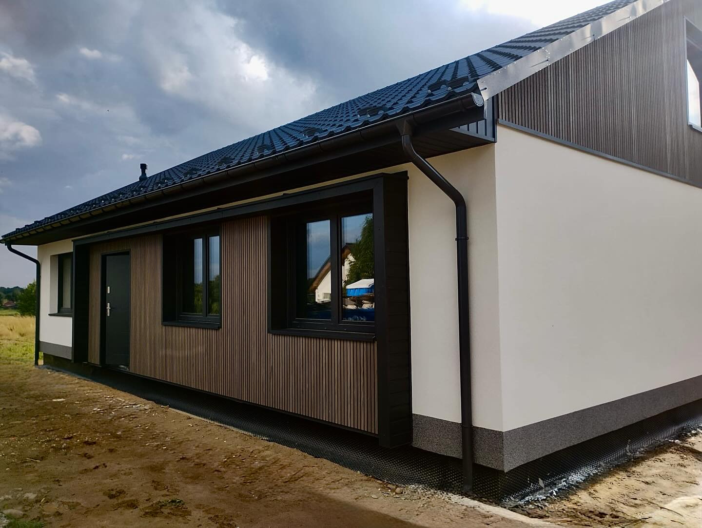 Realizzazione del progetto H 172 nella versione non standard – versione con il rivestimento esterno misto: intonaco/lamiera nera e bianca